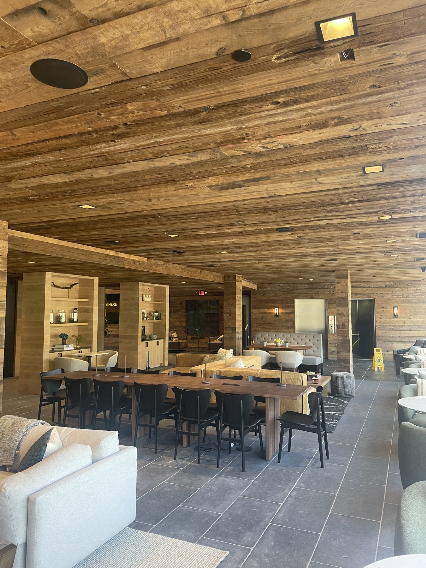 This hotel was recently purchased by a savvy developer from Stamford, CT. The developer and architect took a space that looked fairly mundane and used Mushroom Board to clad the ceilings and walls throughout the common areas. FUN FACTS…Did you know that mushroom board comes from mushroom farms where these hemlock boards are used to create beds for mushrooms to grow in? The mushroom beds are kept in a dark warehouse where they are mostly covered in compost and receive constant humidity. Due to these conditions the boards become weathered and textured relatively quickly. The result is a highly textured, yet fairly consistent product and the images above speak for themselves. And don’t worry about the boards being covered in compost, they are power washed and kiln dried before they ever leave the mill.