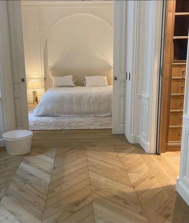 Herringbone is also characterized by its V-shaped pattern, resembling the skeleton of a herring fish, from which it gets its name (third and fourth pictures in slideshow). This pattern is achieved by arranging rectangular planks cut to a fixed size, commonly 4″Width x 20″ or 24″Length, in a staggered zigzag pattern, where each plank is laid at a 90-degree angle to the next. The origins of herringbone flooring date back to the Roman Empire where it was used for road construction typically made from brick or stone (last picture in slideshow). As with chevron, herringbone was adopted for use in homes in Medieval Europe where it first began to be constructed using wood. During the Renaissance period this pattern was especially popular in French and Italian architecture, prominently used in grand chateaux and palazzos. The enduring appeal of herringbone flooring lies in its combination of beauty and functionality, making it a timeless choice across various architectural styles.