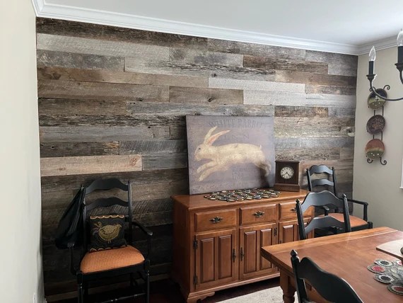 - Unique Character and History: Reclaimed wood often carries a rich history, with visible signs of wear, patina, and natural imperfections that add depth and personality to any space. The knots, grain patterns, and weathered textures tell a story that new wood simply cannot replicate. This uniqueness can be used to create a space filled with character, giving a timeless, rustic, or vintage charm.